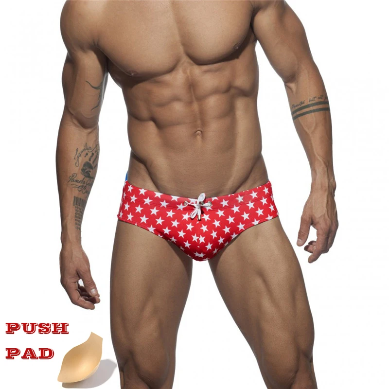 Deportes acuáticosPrecio reducido Bañador estampado para hombre, ropa de baño Sexy, bañadores triangulares, Brave Person, traje de baño de cintura baja, pantalones de estrella de retazos p3KzdzWZy